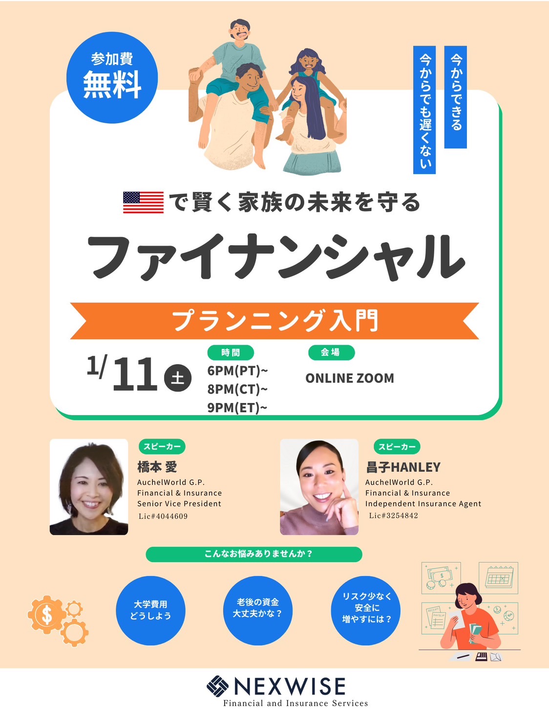 01/11/25(土) 【オンライン】アメリカで賢く家族の未来を守る<ファイナンシャルプラニング入門>