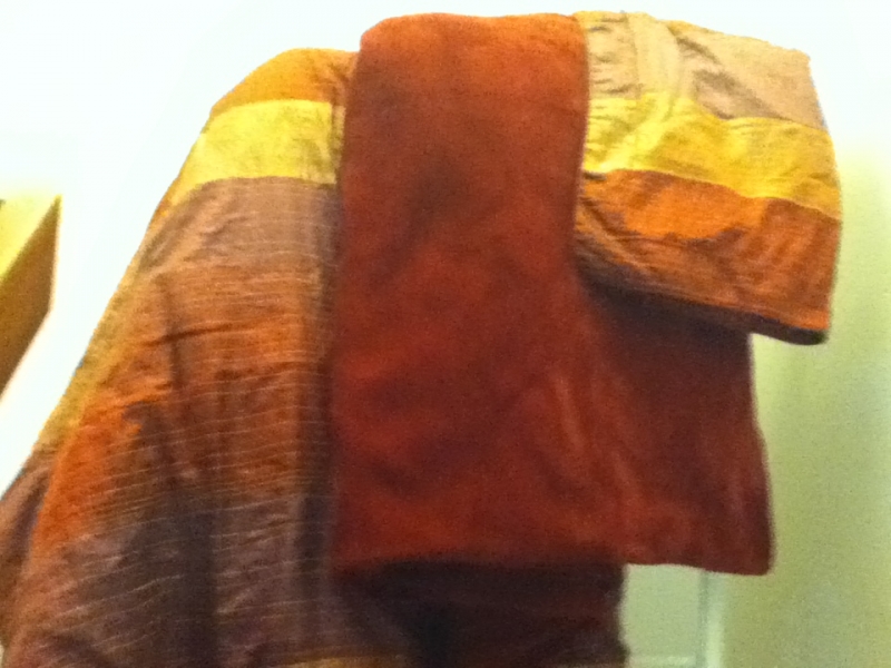 赤の掛け布団とモーフと枕カバーのセット