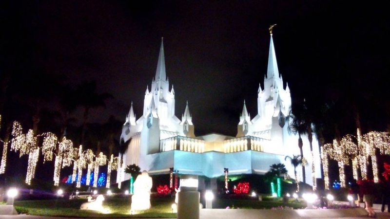 - モルモン教教会の真向いでクリスマスのライトアップは綺麗