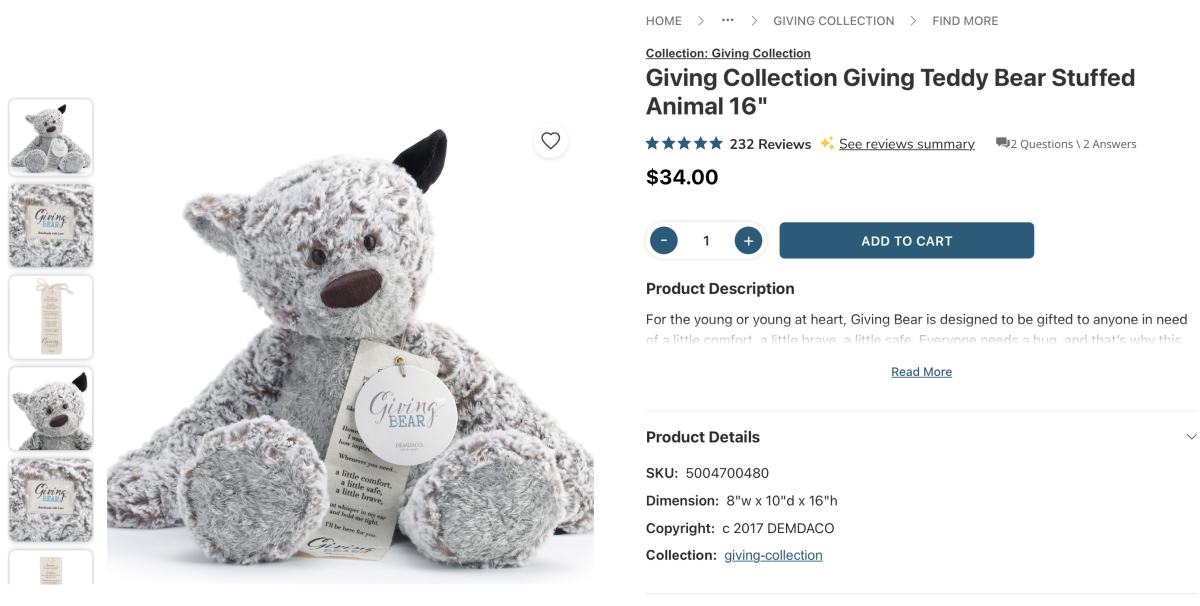 (2) Demdaco Giving Bear $10