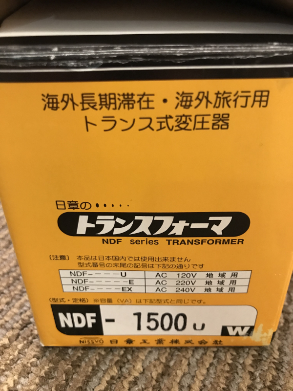 電気製品の消費電力値の1.25倍以上の容量を持つ変圧器をお選びください。