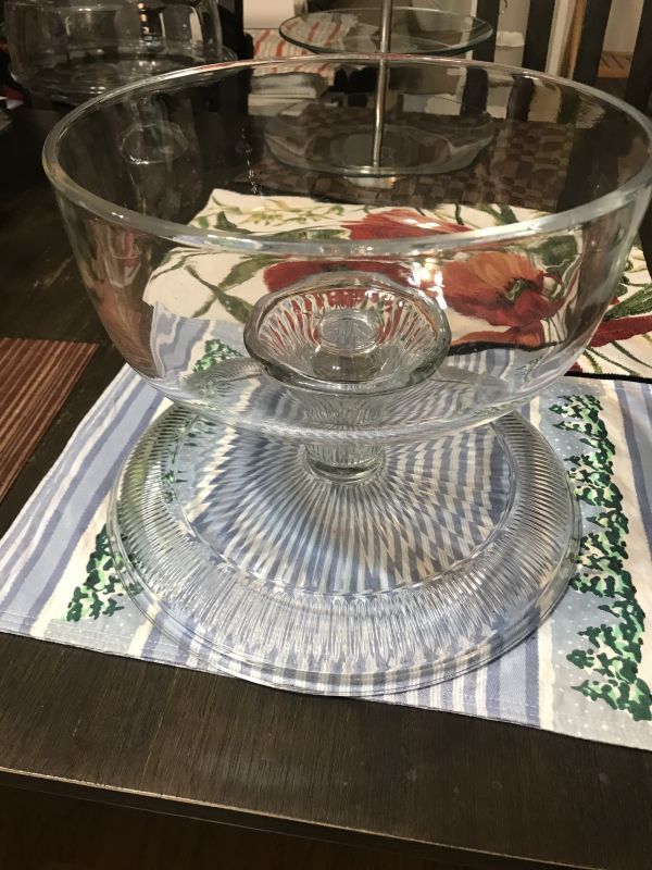 重厚なガラス製です。ドームを逆さまにするとパンチや、サングリアボールになります。また、ドームをはずすと、シュリンプカクテルなどにも使えます。
