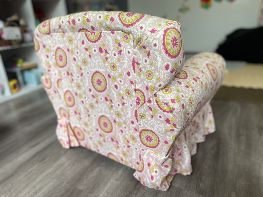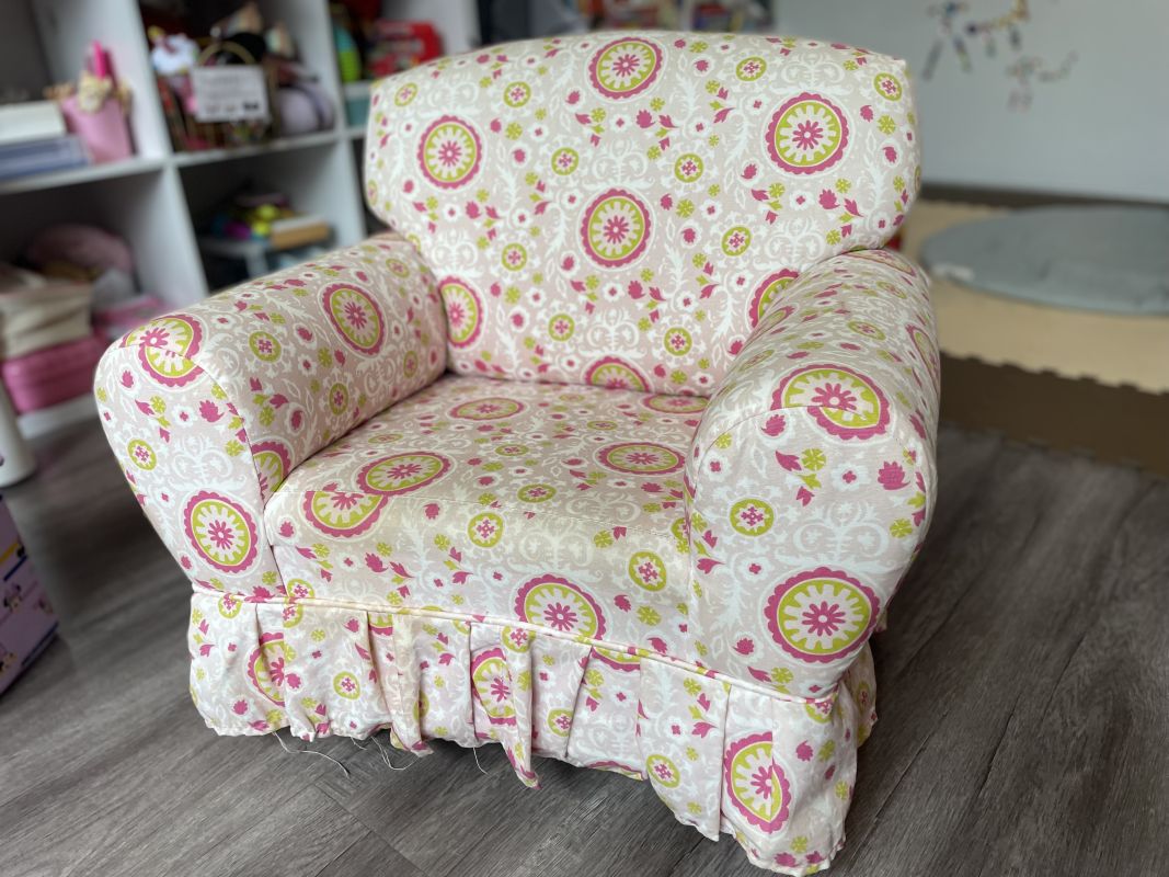 小学校低学年くらいまでのお子さん用のロッキングチェアです。若干日焼けがありますが、状態はいいです。