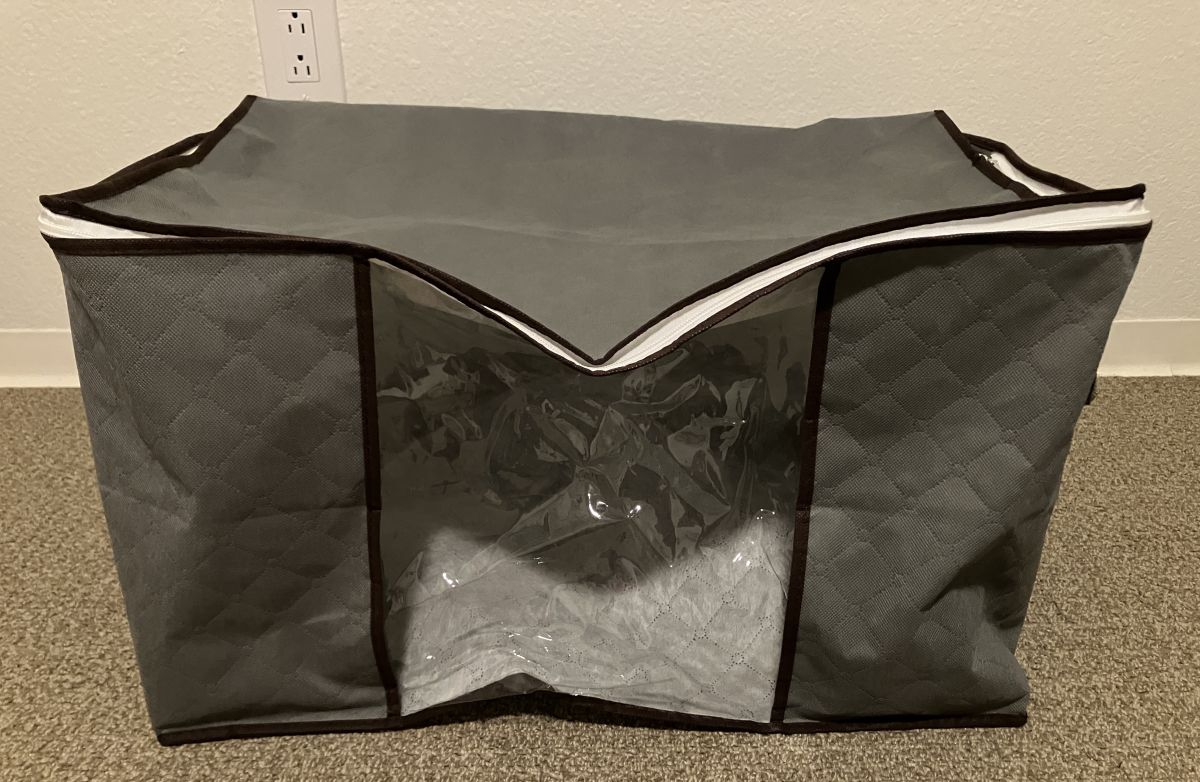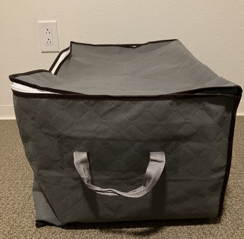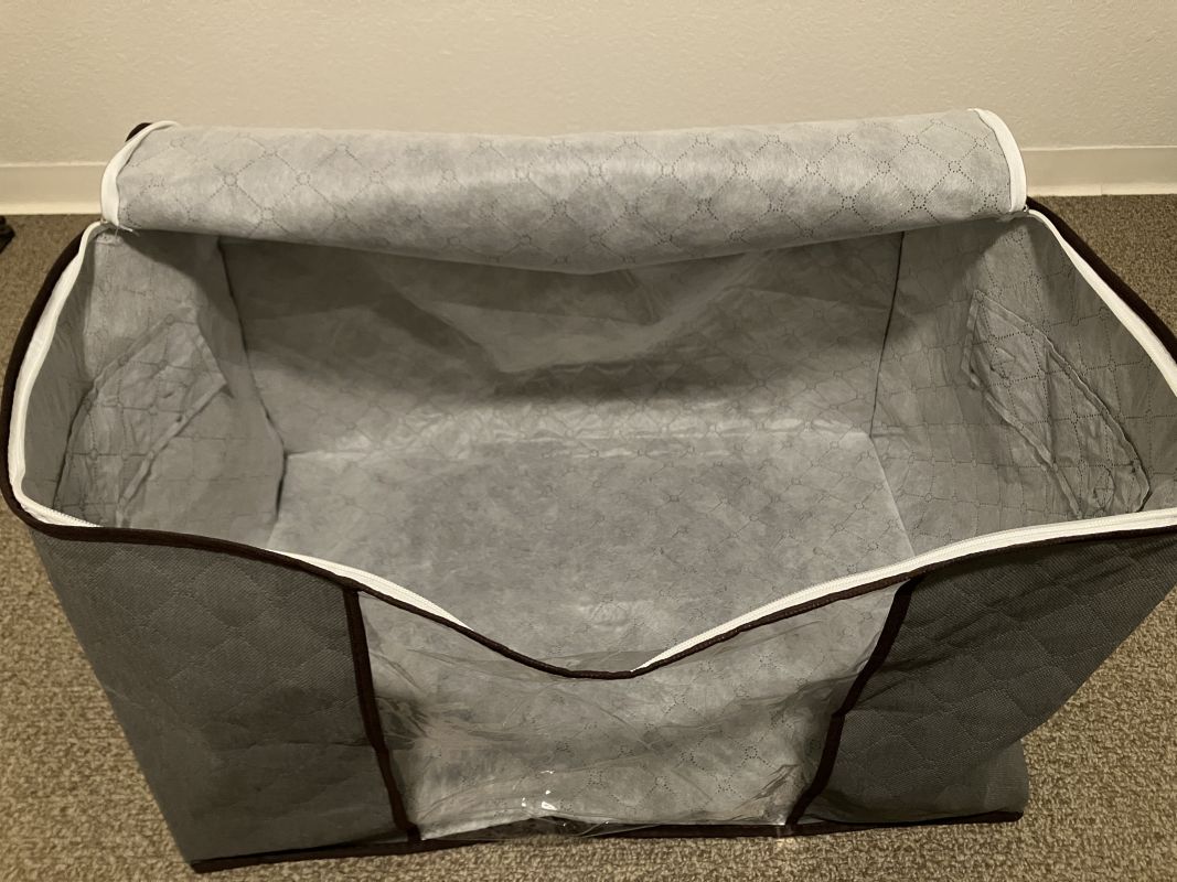 軽い布素材の収納ボックスです。布団や衣服など軽いものを入れて収納できます。持ち手付き。