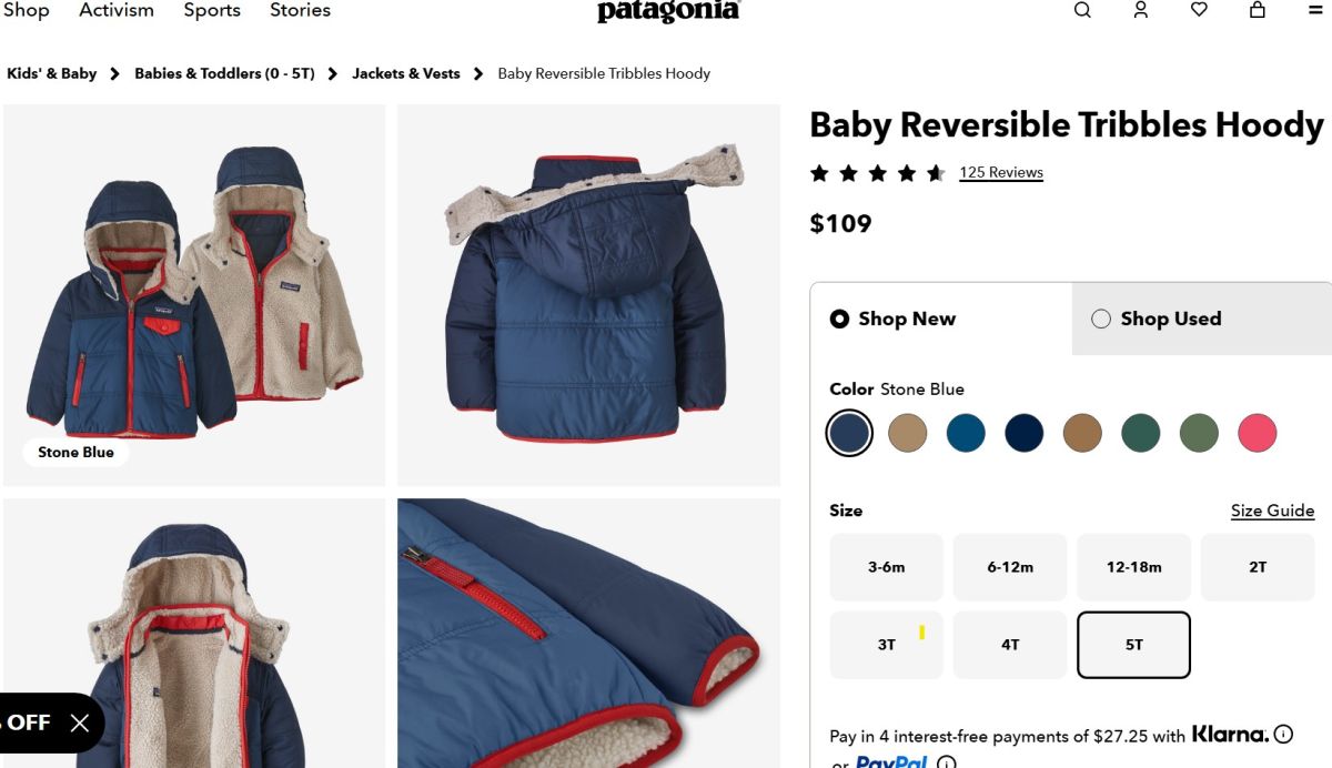‐ その他の情報は公式リンクをご参考ください(https://www.patagonia.com/product/baby-reversible-tribbles-hoody/191743767081.html)