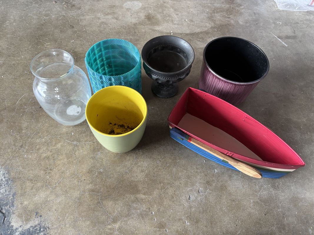 船の形をした植木鉢は使っていません。飾りのオールは両サイドにあり取り外し可能。