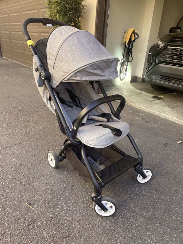 コンパクトに折りたためて片手で取り回せるのが特徴です。キズはございますが、走行に問題ありません。サブベビーカーにどうぞ。