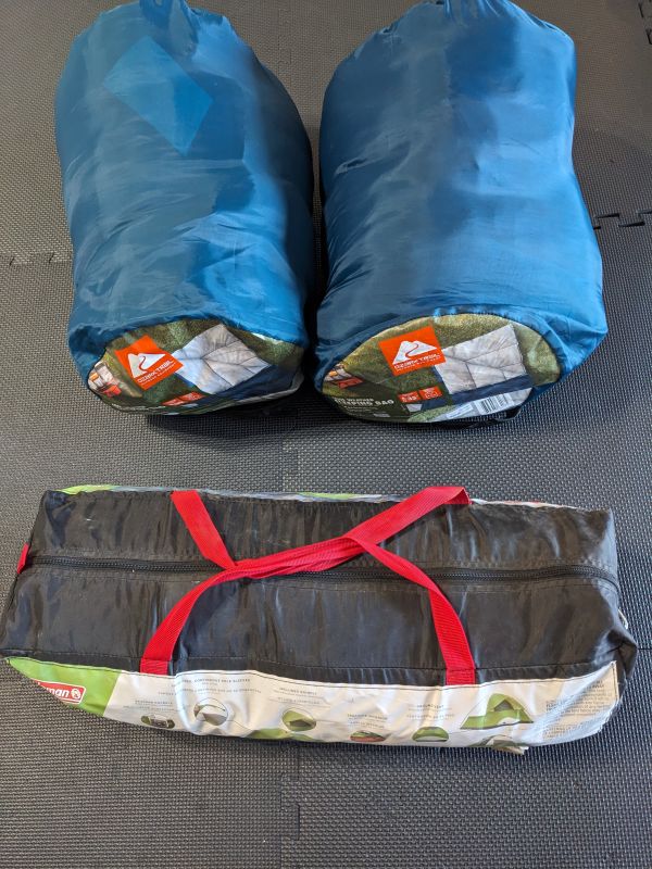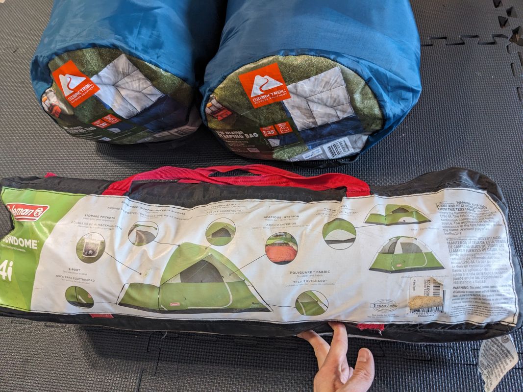 キャンプ用品を各5$で、3つ合わせて15$でお売りします。一つだけの購入も可能です。エアベッドもあるので、もしご希望であればそれも5$でお譲りします。