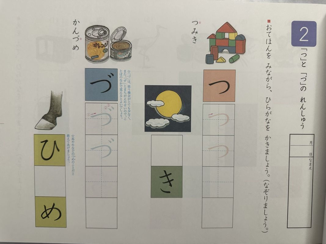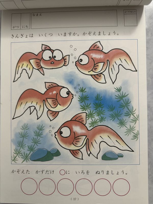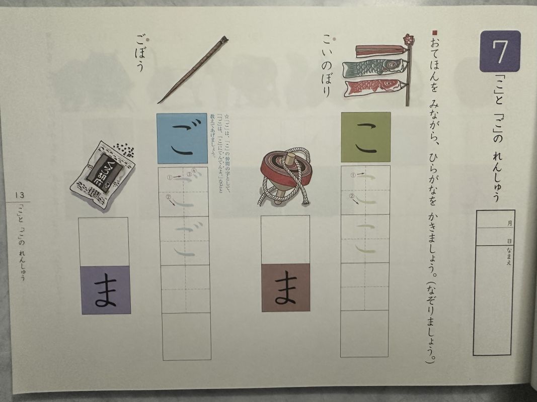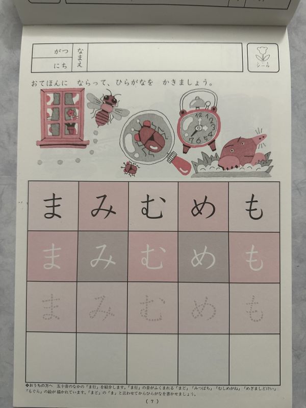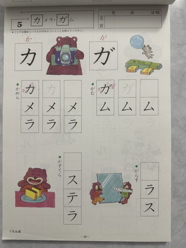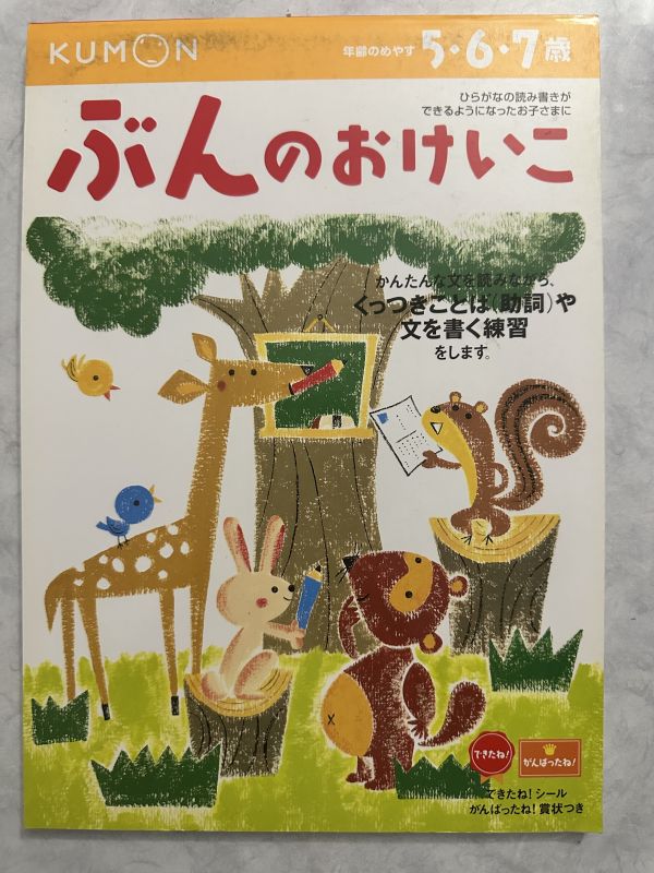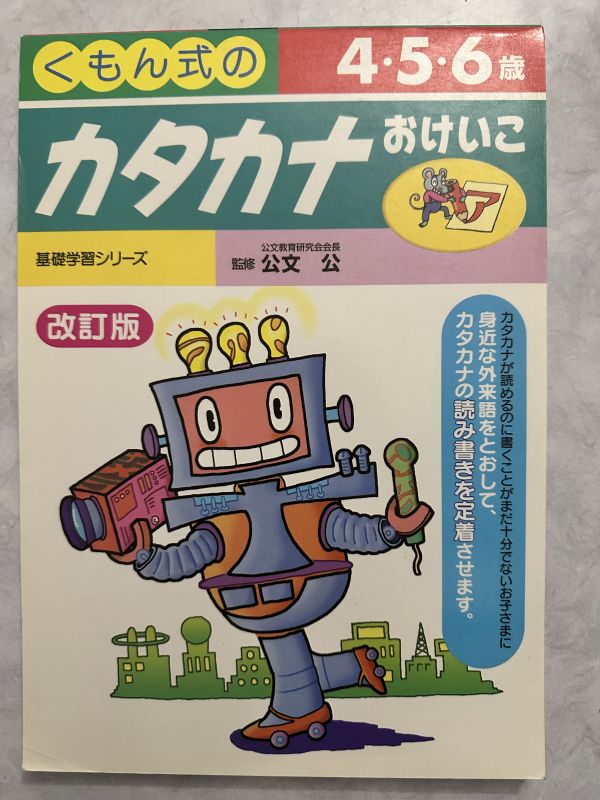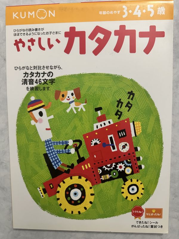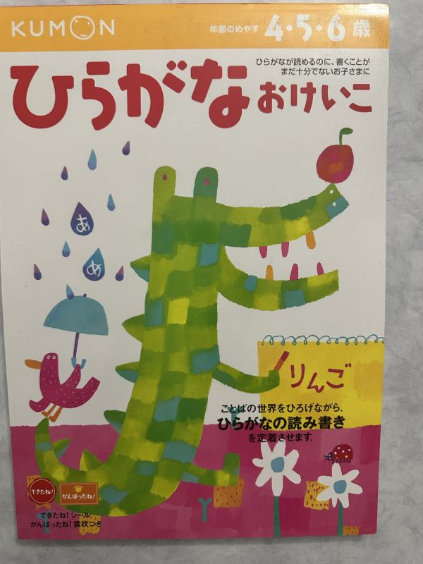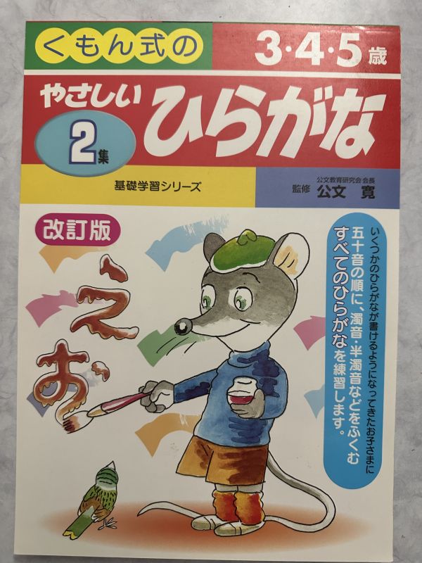 3~7歳用の公文式のひらがな、カタカナ、数、文の教本です。