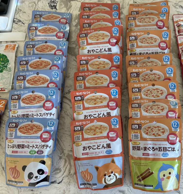 今年6月に日本で購入して持って来た離乳食パウチが沢山あるので、1つ$2でお譲り希望してます。賞味期限は、全て2026年6月以降です。詳しくは、添付写真をご確認お願いします。