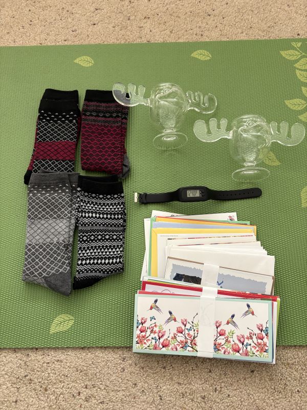 新品靴下4足組➕無料新品時計付歩数計/トナカイペアグラス他