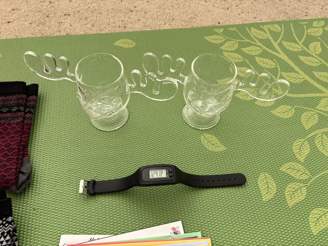 新品靴下4足組➕無料新品時計付歩数計/トナカイペアグラス他