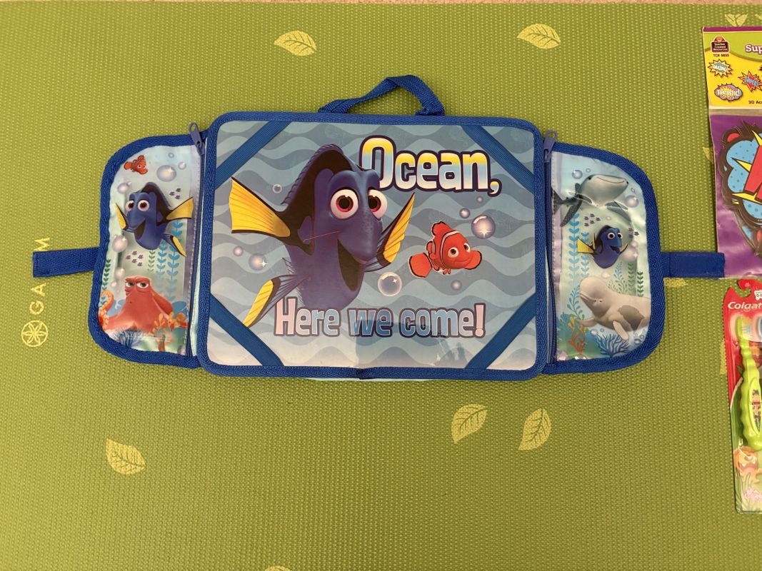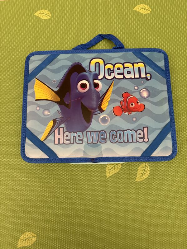 ディズニー ニモの携帯用ラップデスク。両サイドに収納ポケットがありますので、鉛筆やマーカーなどを入れられます。