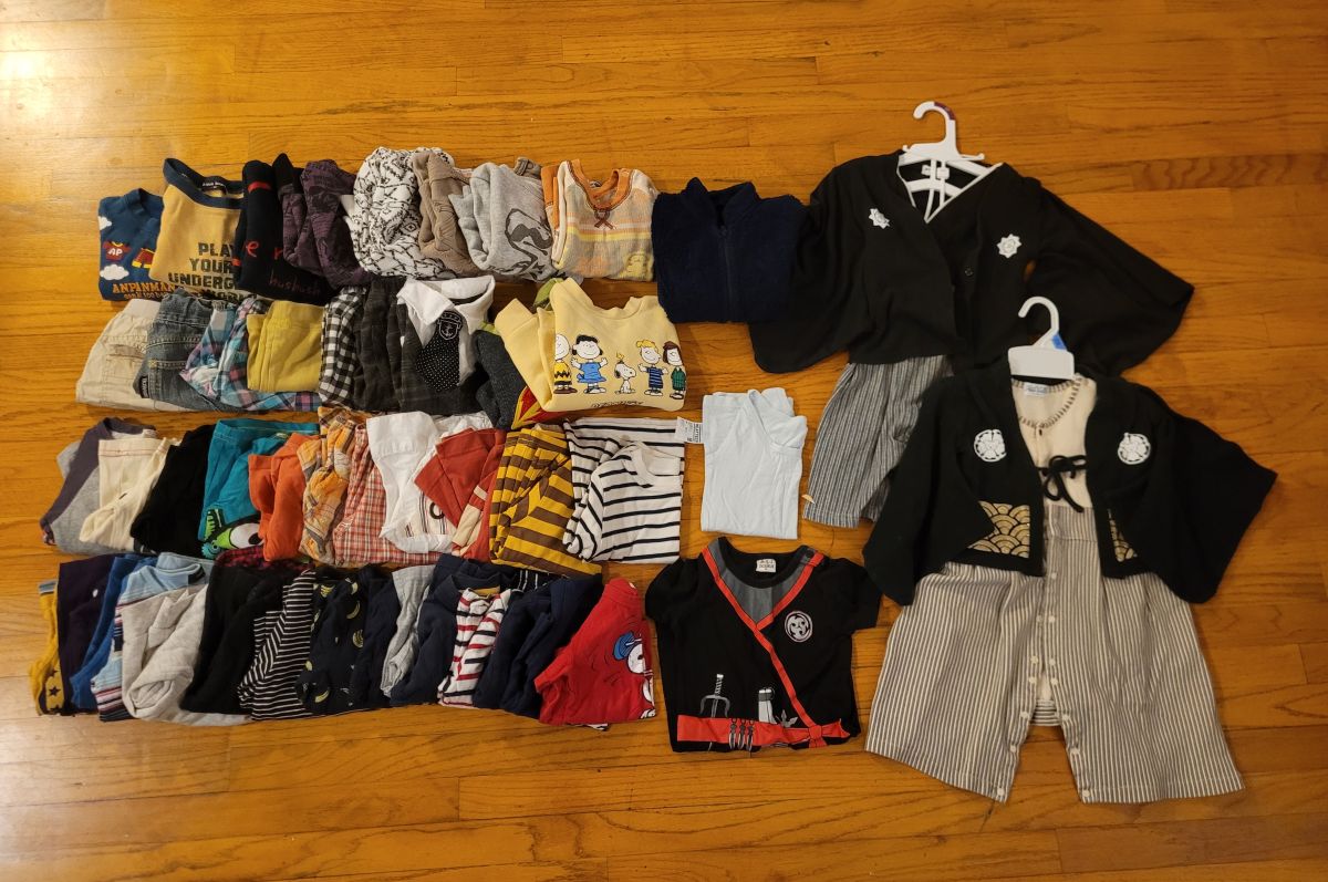 日本の子供服40点以上。ほぼ男児のものです。長袖、半袖、短パン、トレーナー、パーカー、ヒートテック、フリース、袴など。全てまとめてご購入いただけると助かります。あくまで中古品ということをご理解いただいた上で、ノークレームノーリターンでよろしくお願いします。