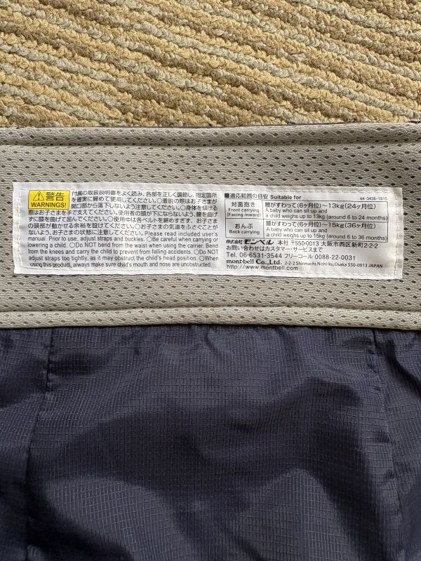 モンベルの抱っこ紐です。軽いので旅行時に使いました。