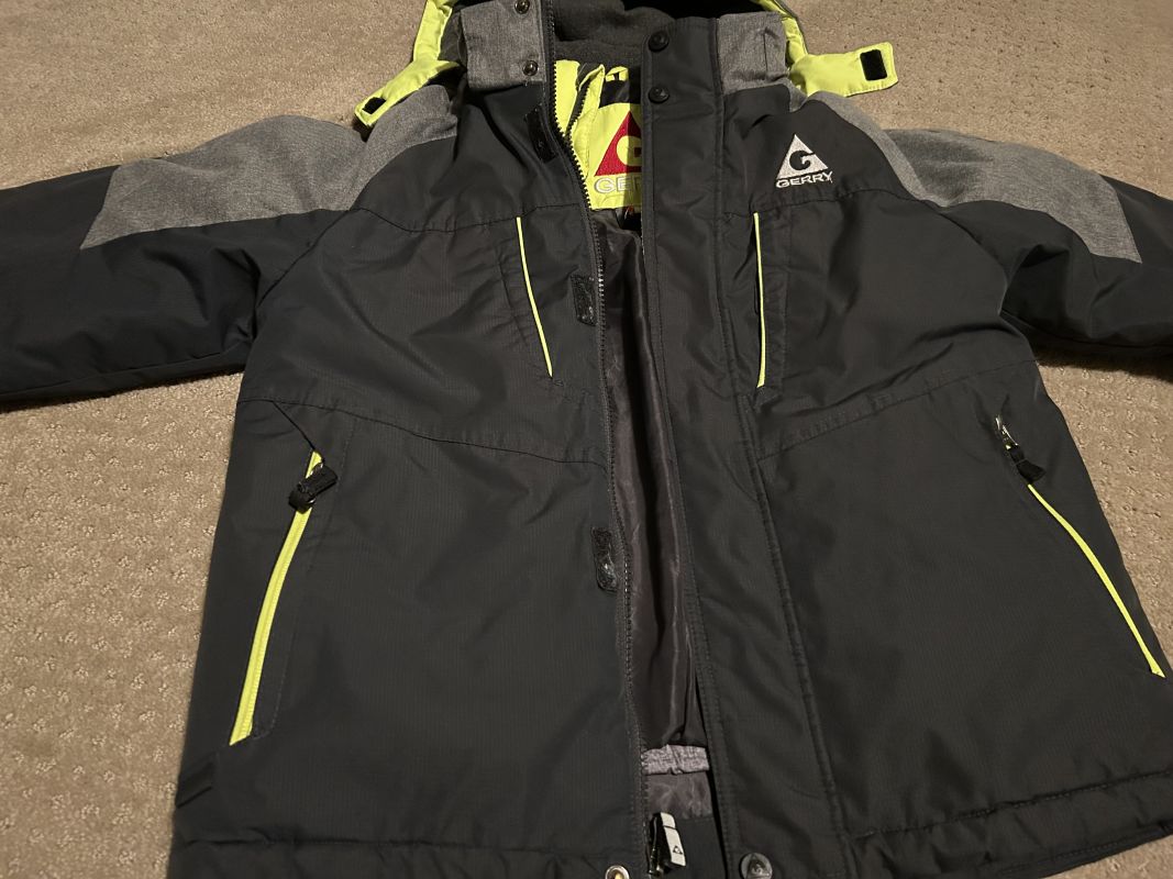 サイズはYouth S(7/8)、色はグレーと黒と蛍光黄色。