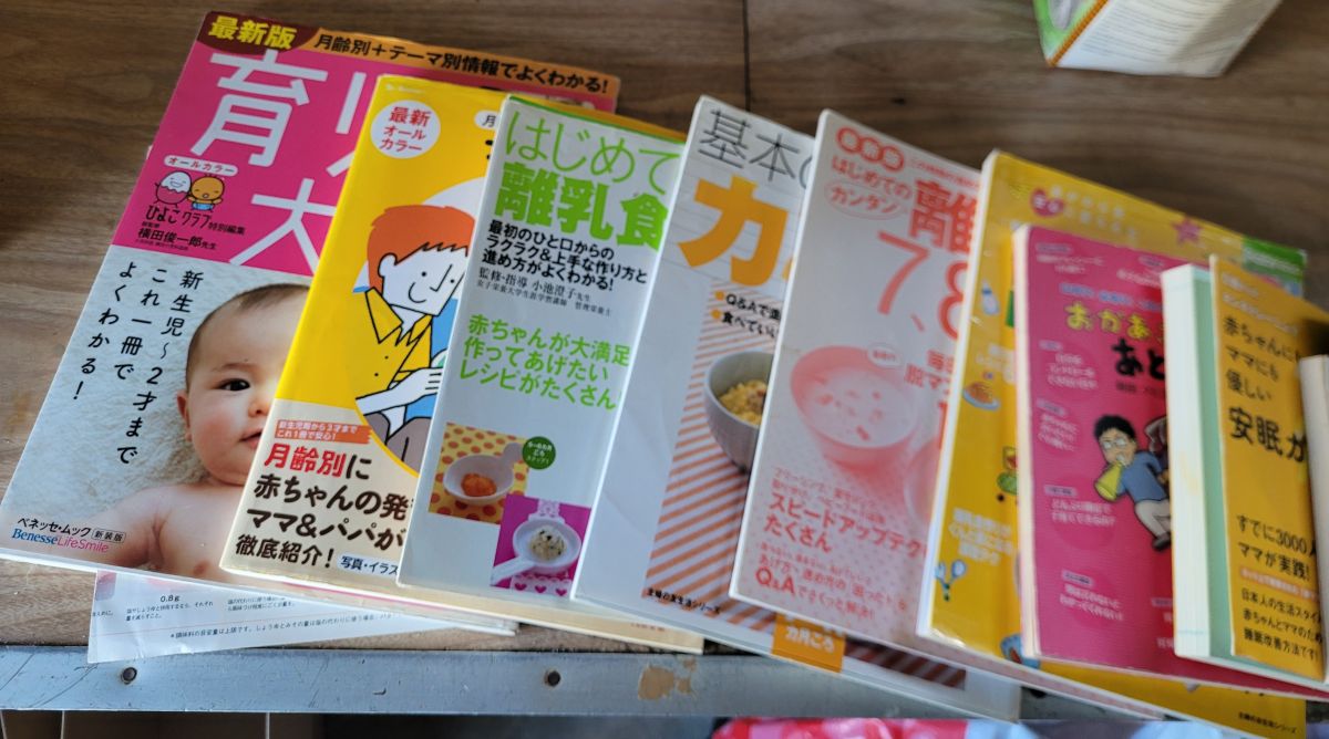 離乳食と育児本無料で差し上げます。古いものもありますが、離乳食を始める際にかなり参考になりました。全て引き取っていただけると助かります。
