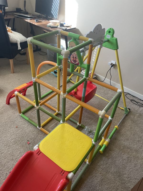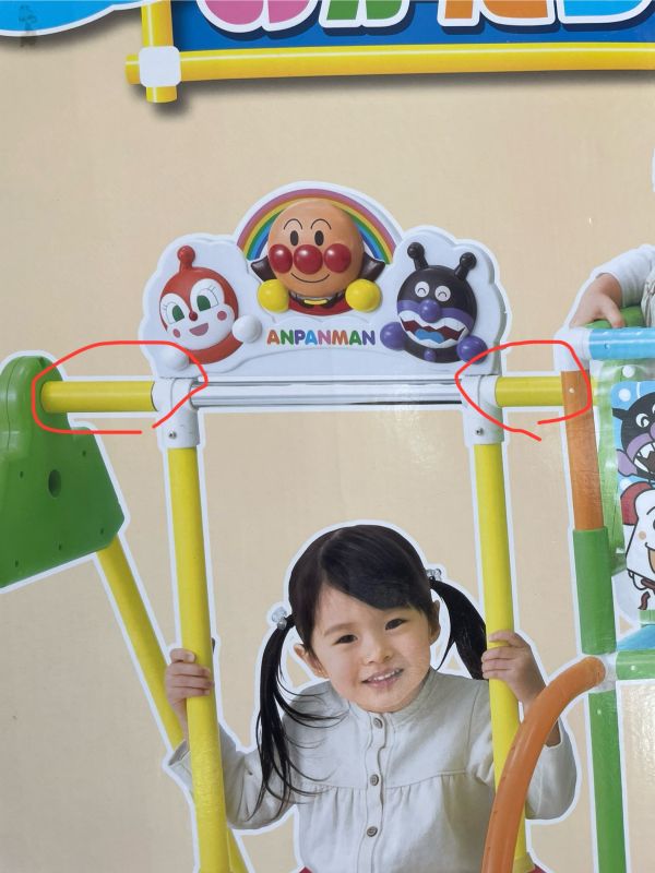 ※ブランコが左右に移動しないための筒の部品が不足しています。使用には問題ありませんが、ご了承ください。写真をご確認ください。