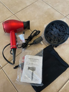 ハイパワー。旅行用に購入したので、3度しか使用していません。ほぼ新品。カールヘアアタッチメントとメッシュのバッグ付き。取説付き。コンパクトサイズ。購入時価格$100