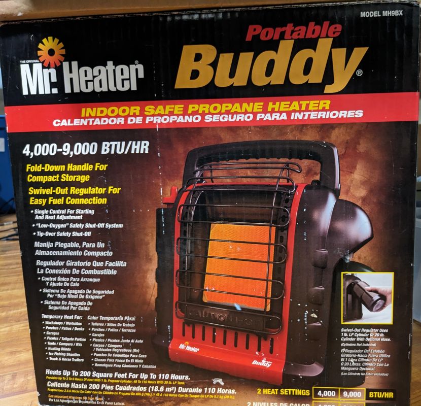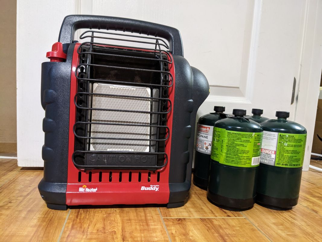 冬のキャンプで大活躍のMr.Heaterです。Colemanのプロパンガスもお付けします。