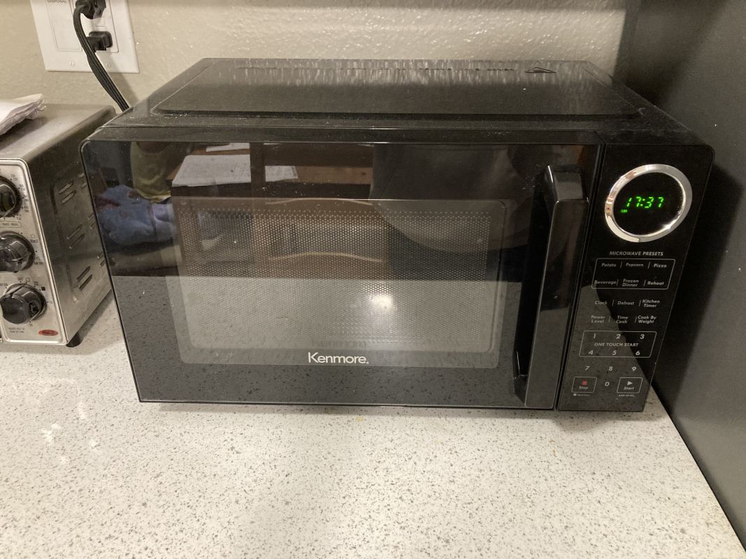 targetで買ったKenmoreの電子レンジです。使い方は簡単なので必要ないと思いますが説明書付き。2年ほどしか使ってないのでキレイで通常使用全く問題ありません、ぜひ使ってやって下さい!