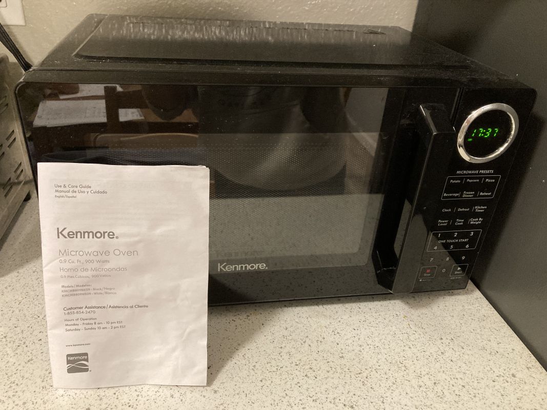 targetで買ったKenmoreの電子レンジです。使い方は簡単なので必要ないと思いますが説明書付き。2年ほどしか使ってないのでキレイで通常使用全く問題ありません、ぜひ使ってやって下さい!