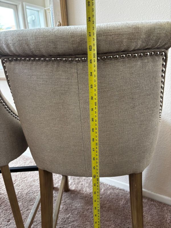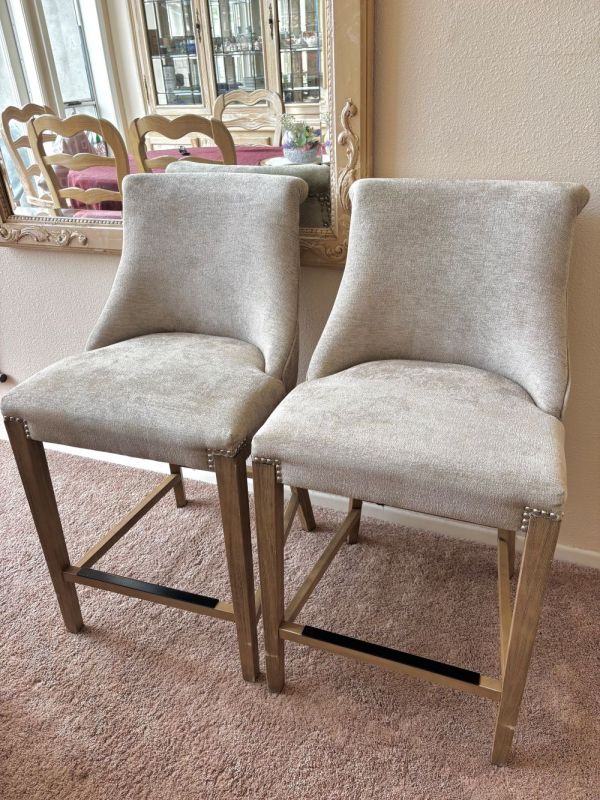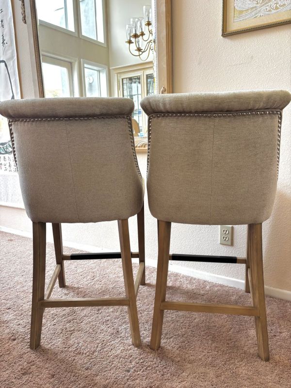 ベージュの布張りカウンタースツールです。