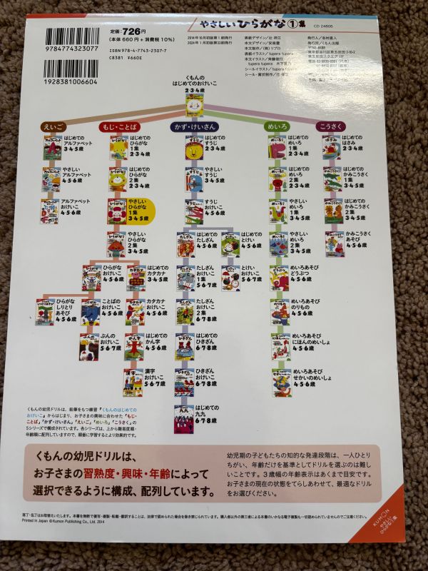 KUMON くもん やさしいひらがな①集(3・4・5歳向け)