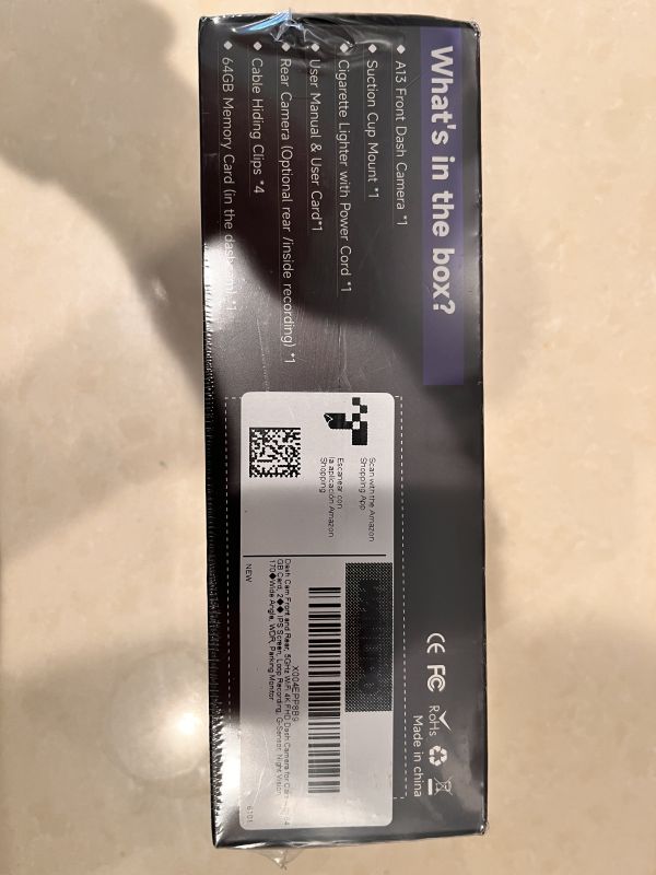 Amazonで昨年の7月に購入し、未使用未開封のまま保管していました。フロント、リアの2つのカメラが搭載されています。