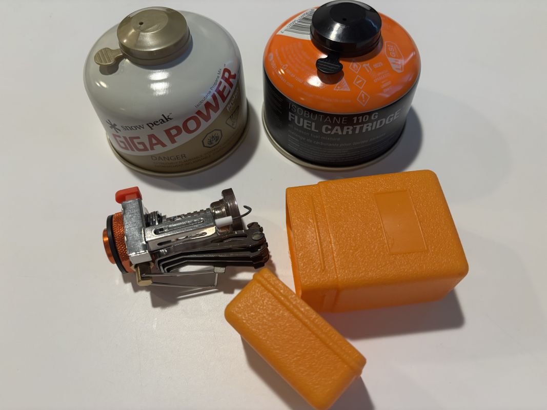ボンベはひとつは使いかけで、もうひとつは新品未開封です。アウトドアショップで購入しました。