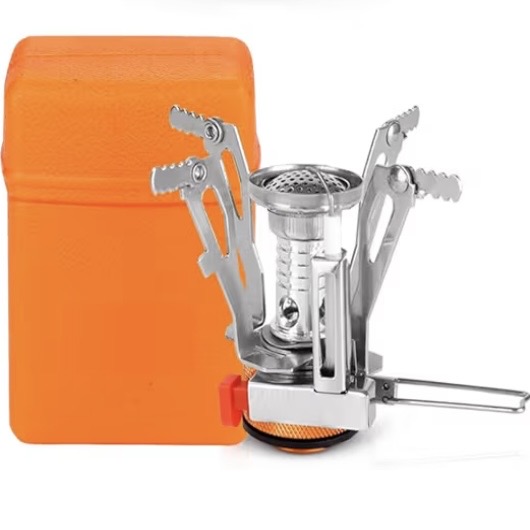キャンプやアウトドアで使える折り畳み式のミニバーナーとガスボンベです。
