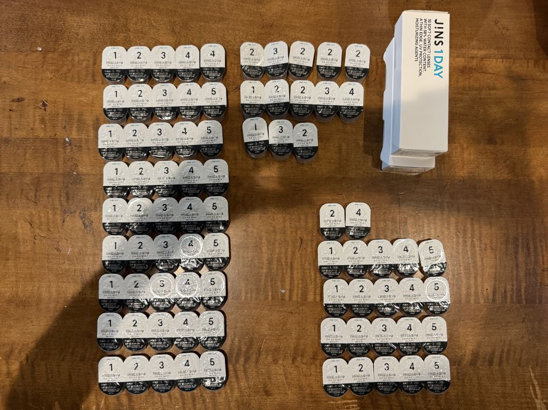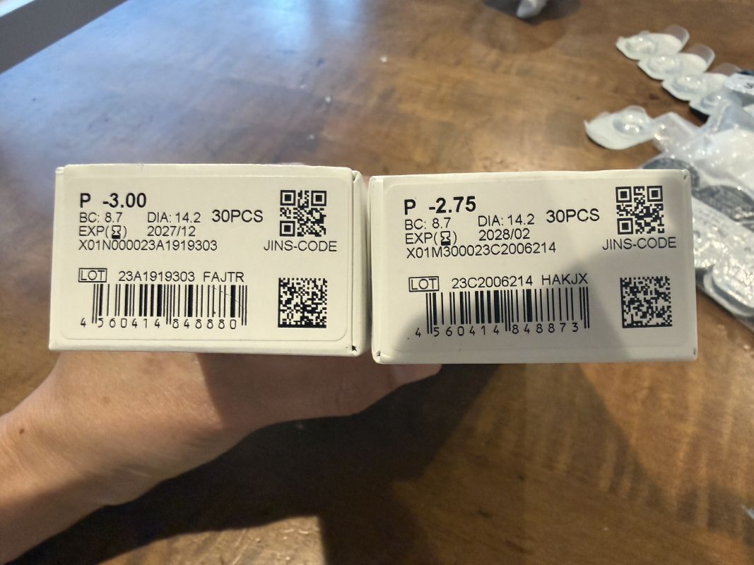 日本から持ってきたJINSコンタクトレンズを使っていましたが、自分の度数が変わったためお譲りいたします。