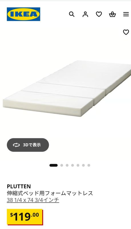 PLUTTEN 伸縮式ベッド用フォームマットレス、38 1/4 x 74 3/4インチ - IKEA https://share.google/bmGRABuHy3WuYEN6Z
