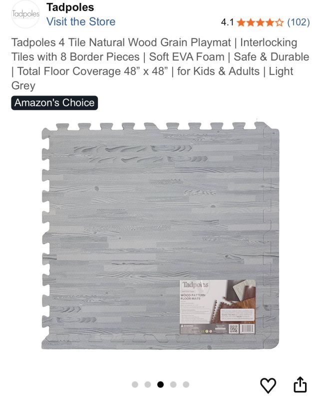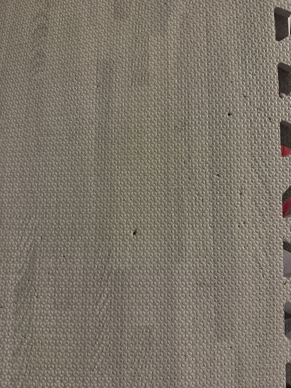 グレーの木目柄のフィームタイルです。4セットほどあり、コーナーピースも全て揃っていて未使用のものも沢山あります。ただ、子供がタイルに鉛筆などで穴を開けてしまった跡がある(写真参照)ので無料でお譲りします。