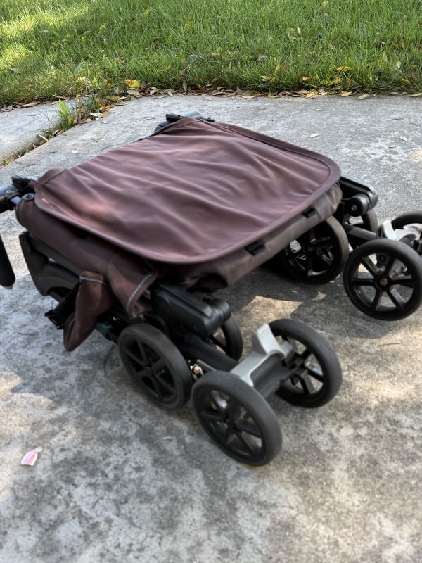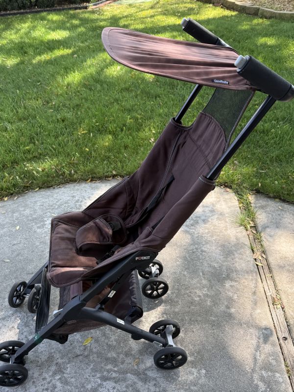 日本で購入しました。子供が2人使ったため使用感があり、フットレストの部分が切れてしまったので補強してあります(写真参照)が、その他機能は問題ありません。バッグに収納でき、飛行機のオーバーヘッドコンパートメントにも入るので旅行にとても便利です。