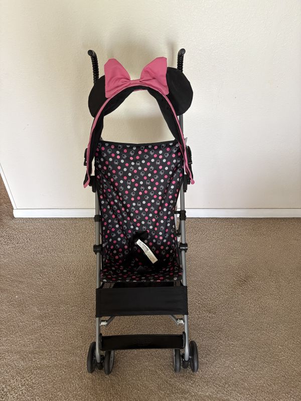 新品同様Disneyミニーマウスのアンブレラベビーカー 収納付
