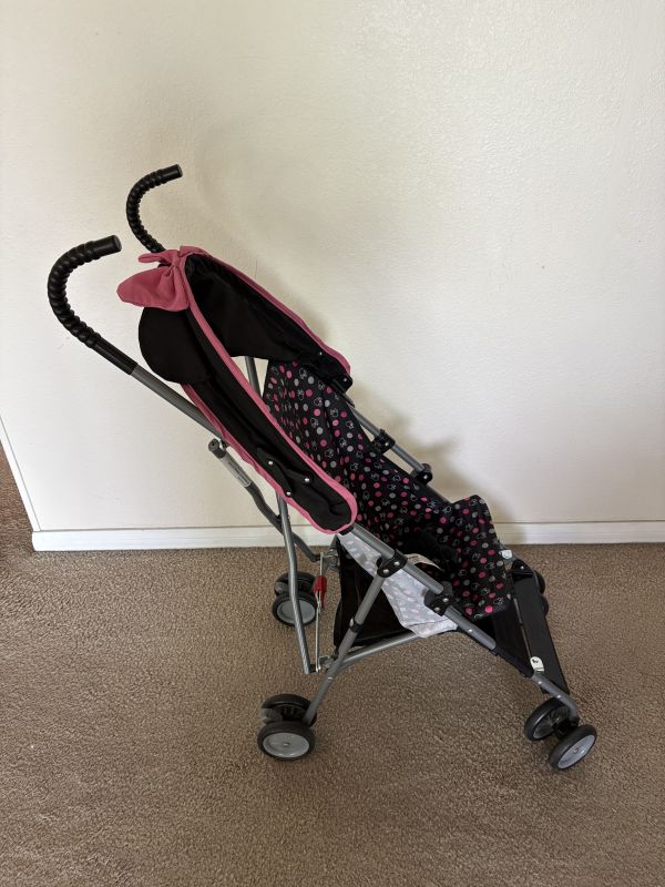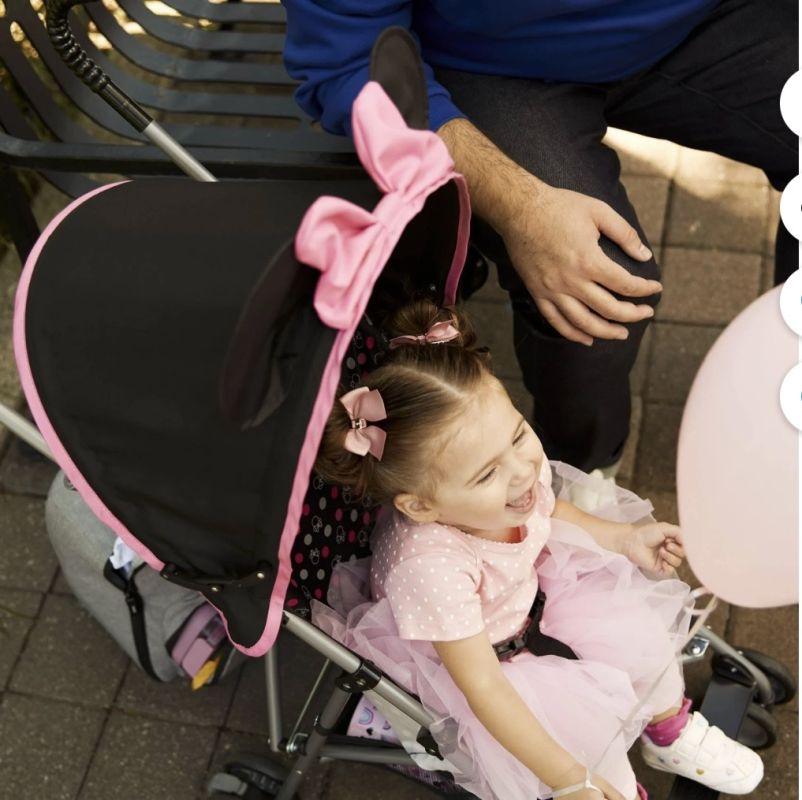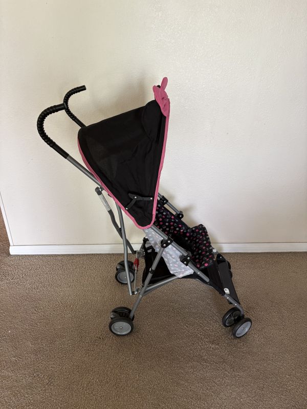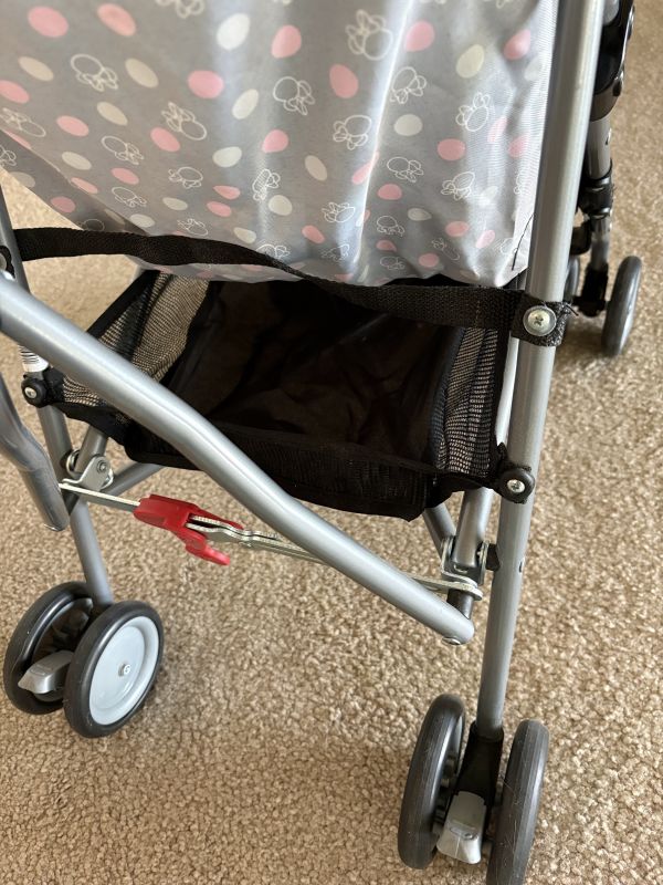 新品同様Disneyミニーマウスのアンブレラベビーカー 収納付