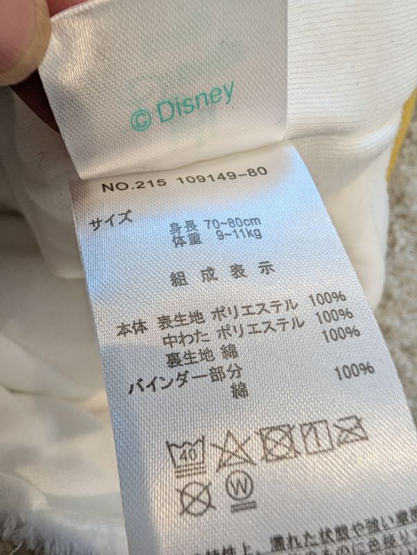 日本から持ってきたドナルドのロンパースで(帽子付き)す。