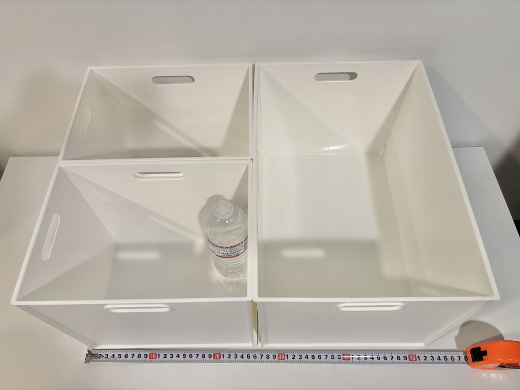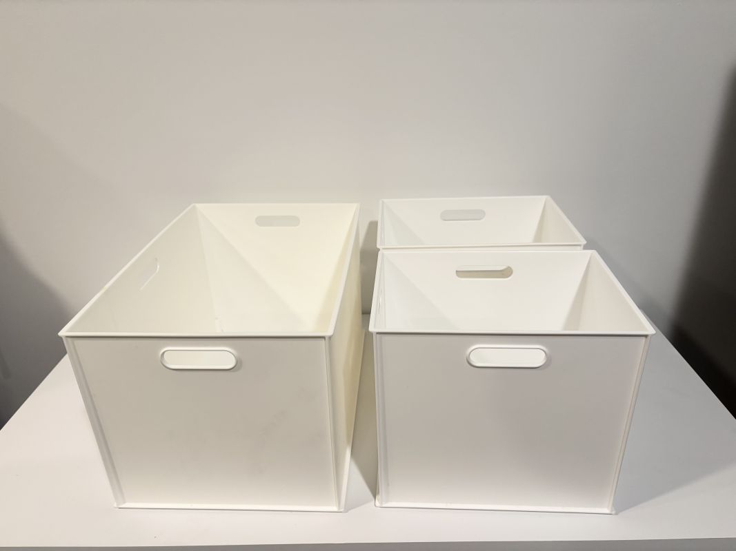 3年前に日本の家具屋さんで購入したホワイトの収納ボックス3つです。