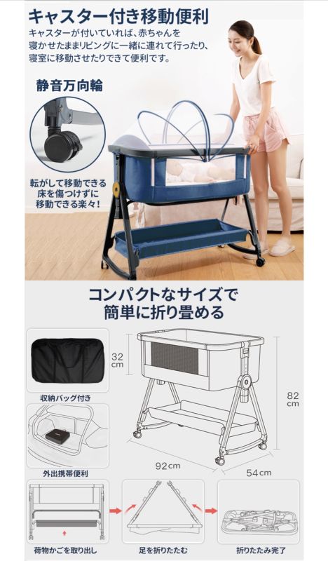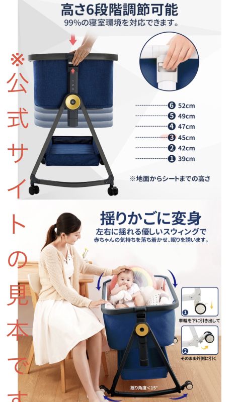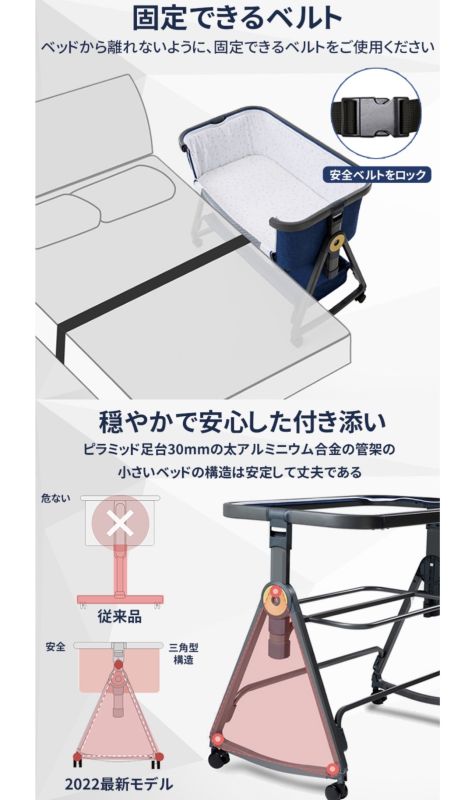・高さ6段階調節可能で、ソファーや大人ベッドにくっつけてご利用可能です。(固定ベルトあり)