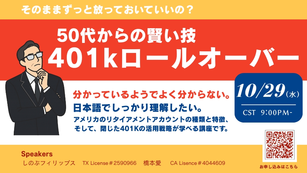 10/29/25(水) 「401kロールオーバー」無料オンラインセミナー