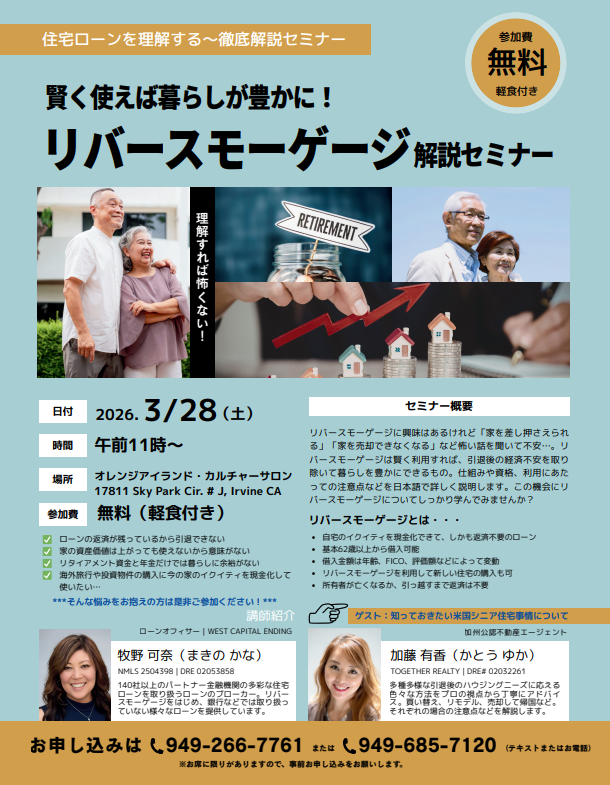 03/28/26(土) 【無料セミナー】リバースモーゲージに興味ある方必見!解説セミナー