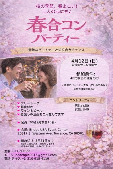04/12/26(日) 桜の季節 🌸春 合コン パーティー開催🌸