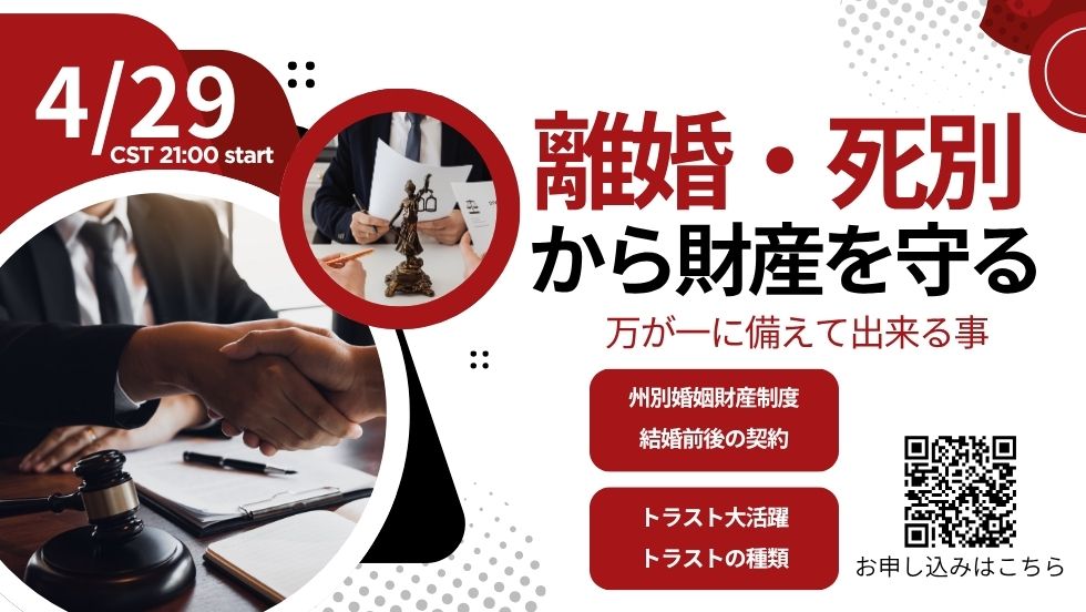 04/29/26(水) アメリカで離婚・死別から自分の財産を上手に守る 橋本愛